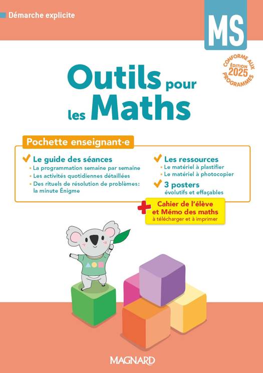 INCLUS : Mon cahier de maths, la version noir et blanc du cahier de l’élève et le Mémo des Maths à télécharger via QR codes et à imprimer.