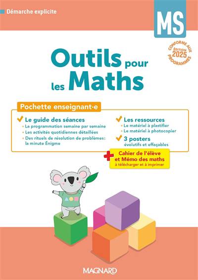 INCLUS : Mon cahier de maths, la version noir et blanc du cahier de l’élève et le Mémo des Maths à télécharger via QR codes et à imprimer.