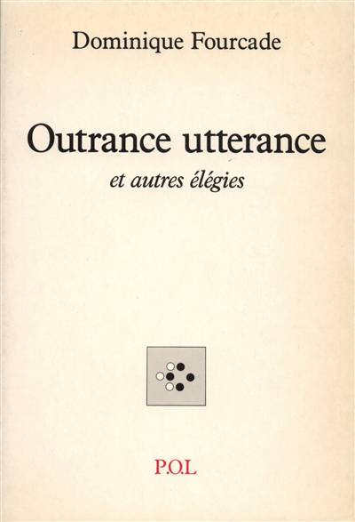 Outrance utterance et autres élégies traite de la voix du poème, distincte de la voix du poète. Il traite du temps, de l'air, de la lumière, de l'espace qui sont la matière du mot, et du gouffre, qui est la matière de la phrase. Il traite enfin de la prison, qui est le lieu où opère l'écrivain.