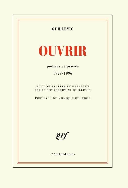 Ouvrir vient boucler la trilogie posthume du poète, après Relier (2007) et Accorder (2013). Il réunit une centaine de textes en prose et en vers, écrits entre 1929 et 1996, et publiés dans des opuscules à tirages limités, tantôt livres d'artistes, tantôt textes de commande, autant dire quasi inédits. On y découvre un Guillevic tout neuf, fier et heureux d'exposer ses choix poétiques et artisanaux ; un Guillevic auteur de chansons avec Les chansons d'Antonin Blond et celles de Clarisse qui célèbrent Elsa Triolet et l'amitié qui les liait. L'ouvrage s'achève sur une Ultime lettre à un jeune poète qui est en quelque sorte le testament poétique d'Eugène Guillevic.Un important dossier final étudie les rapports de Guillevic avec la peinture et les peintres. L'ensemble constitue un document du plus grand intérêt pour la connaissance du poète de Carnac et de Terraqué.