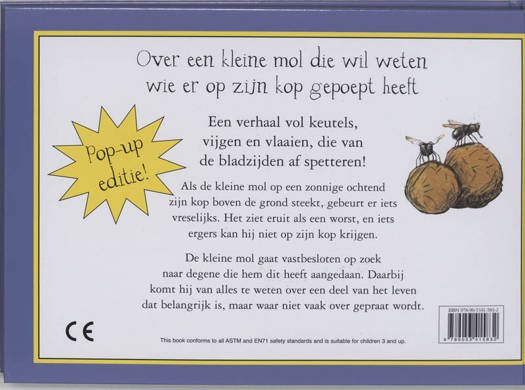 Deze klassieker onder de prentenboeken is nu ook verkrijgbaar als pop-up Beleef nog meer pret met de mol die op zoek gaat naar de schuldige van de drol op zijn kop.