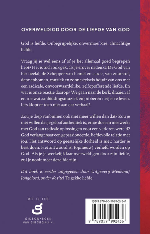 Vraag jij je wel eens af of je het allemaal goed begrepen hebt? Het is toch ook gek, als je erover nadenkt. De God van het heelal, de Schepper van hemel en aarde, van zuurstof, dennenbomen, muziek en zonnestelsels houdt van ons met een radicale, onvoorwaardelijke, zelfopofferende liefde. En wat is onze reactie daarop? We gaan naar de kerk, draaien af en toe wat aanbiddingsmuziek en proberen netjes te leven. Iets klopt er toch niet aan dat verhaal? Zou je diep vanbinnen ook niet meer willen dan dat? Zou je niet willen dat je geloof authentiek is, ertoe doet en meewerkt met God aan radicale oplossingen voor een verloren wereld? God verlangt naar een gepassioneerde, liefdevolle relatie met jou. Het antwoord op geestelijke dorheid is niet: harder je best doen. Het antwoord is: (opnieuw) verliefd worden op God. Als je je werkelijk laat overweldigen door zijn liefde, zul je nooit meer dezelfde zijn.