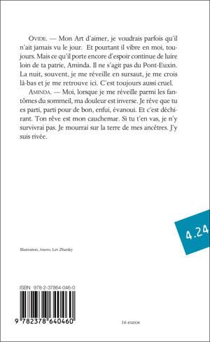 Ovide, le grand poète de toutes les séductions, le favori des élégances romaines, s’est trouvé brutalement exilé par Auguste sur les bords lointains de la mer Noire : parages barbares à ses yeux. Sa douleur, au cœur d’un exil qui le fige loin de la Ville et de ses bonheurs enfuis, n’efface pas tout à fait le rêve d’un retour. Mais à quel prix serait-ce ? On saisit ici l’homme blessé au moment intense où l’arrivée d’un nouvel envoyé du Prince, fonctionnaire cynique et madré, vient concentrer soudain devant lui la résurgence d’un fol espoir. La sentence sera-t-elle levée ? Il y faudrait qu’Ovide trahisse les habitants colonisés qui l’ont accueilli généreusement et qui songent à une révolte armée. Aminda, fille de ces contrées, héritière des Amazones, est déchirée entre sa passion pour le poète et sa fidélité à son peuple opprimé. Unité de lieu, unité de temps. Au fil de ces trois actes, entre raison et passion, entre politique et littérature, entre rumeur et vérité, entre réalisme et générosité, le sort balance.