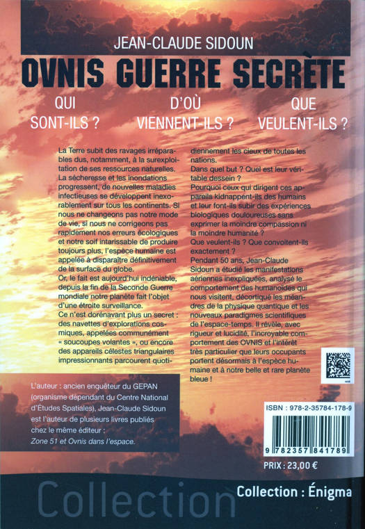 La Terre subit des ravages irréparables dus, notamment, à la surexploitation de ses ressources naturelles. La sécheresse et les inondations progressent, de nouvelles maladies infectieuses se développent inexorablement sur tous les continents. Si nous ne changeons pas notre mode de vie, si nous ne corrigeons pas rapidement nos erreurs écologiques et notre soif intarissable de produire toujours plus, l'espèce humaine est appelée à disparaître définitivement de la surface du globe. Or, le fait est aujourd'hui indéniable, depuis la fin de la Seconde Guerre mondiale notre planète fait l'objet d'une étroite surveillance de la part d'étranges vaisseaux aériens. Ce n'est dorénavant plus un secret, de petites navettes d'explorations cosmiques, appelées communément « soucoupes volantes », ou encore des appareils célestes triangulaires impressionnants parcourent quotidiennement les cieux de toutes les nations. Dans quel but ? Quel est leur véritable dessein ? Pourquoi ceux qui dirigent ces appareils kidnappent-ils des humains et leur font-ils subir des expériences biologiques douloureuses sans exprimer la moindre compassion, la moindre humanité ? Que veulent-ils ? Que convoitent-ils exactement ?
