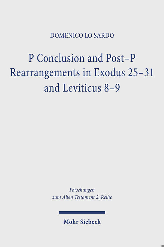 In this study, Domenico Lo Sardo examines the textual and literary development of Exodus 25-31 and Leviticus 8-9, expanding on prior research on the Tabernacle's second account (Exodus 35-40). He argues that Exodus 25-31 was later composed to legitimize the Temple's construction and was shaped alongside Leviticus 8. Challenging the idea of an early, fully developed Priestly Writing (Pg), his analysis of the texts studied in terms of textual and literary criticism presents it as an evolving tradition with a multistage production history. He further demonstrates that Priestly Writing (P) concludes at Leviticus 8 and does not extend beyond this point. Highlighting themes of divine presence, worship, and sacred space, the author ultimately situates the Temple-cult project within the broader theological framework of creation and covenant fulfillment.