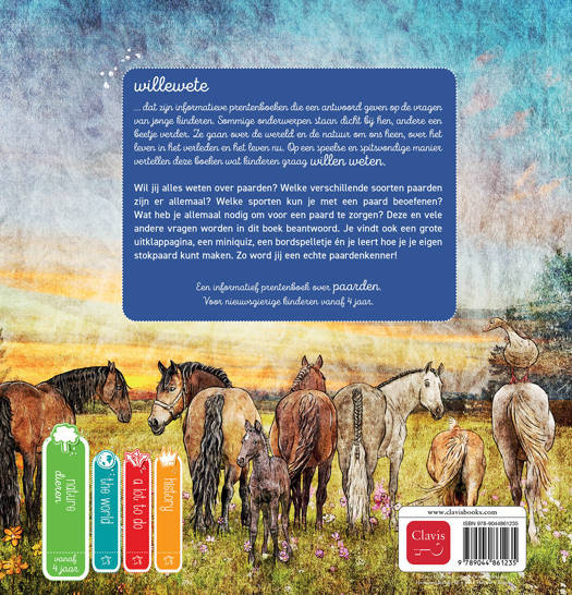 Wil jij alles weten over paarden? Welke verschillende soorten paarden zijn er allemaal? Welke sporten kun je met een paard beoefenen? Wat heb je allemaal nodig om voor een paard te zorgen? Deze en vele andere vragen worden in dit boek beantwoord. Je vindt ook een grote uitklappagina, een miniquiz, een bordspelletje én je leert hoe je je eigen stokpaard kunt maken. Zo word jij een echte paardenkenner!