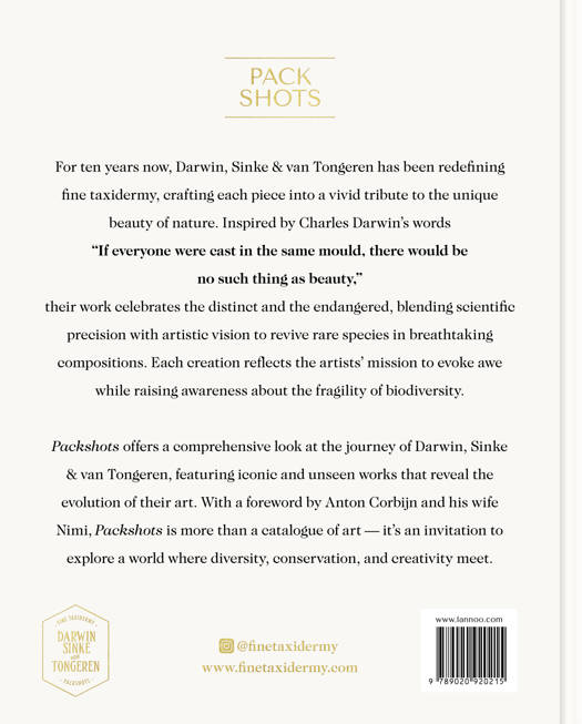 Packshots offers a comprehensive look at the journey of Darwin, Sinke & van Tongeren, featuring iconic and unseen works that reveal the evolution of their art. With a foreword by Anton Corbijn and his wife Nimi, Packshots is more than a catalogue of art - it's an invitation to explore a world where diversity, conservation, and creativity meet.