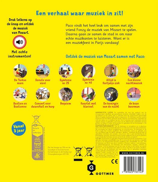 'Paco en Mozart' is een betoverend geluidenboek waarin jonge kinderen kennismaken met klassieke muziek van Mozart. Samen met Paco ontdekken ze wereldberoemde melodieën uit de klassieke muziek.