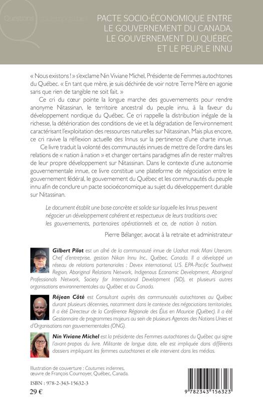 Ce livre traduit la volonté des communautés innues de mettre de l'ordre dans les relations de « nation à nation » et changer certains paradigmes afin de rester maîtres de leur propre développement sur Nitassinan, territoire ancestral du peuple innu. Dans le contexte d'une autonomie gouvernementale innue, ce livre constitue une plateforme de négociation entre le gouvernement fédéral, le gouvernement du Québec et les communautés du peuple innu afin de conclure un pacte socioéconomique.