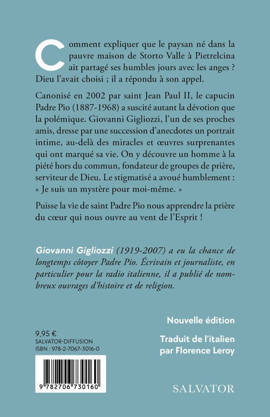 Comment expliquer que le paysan né dans une maison modeste à Pietrelcina ait dû partager ses humbles jours avec les anges ? Dieu l'a choisi et il ne s'est pas dérobé. Qui es-tu donc Padre Pio ? Un homme de prière qui parlait avec Dieu, et dont les groupes de prière sont la plus belle invention, certes. Mais aussi le serviteur de Dieu, le stigmatisé qui avouait : « Je suis un mystère pour moi-même. » Saint Pio de Pietrelcina, que ces pages de ta vie nous apprennent la prière du cÅur qui nous ouvre au vent de l'Esprit !