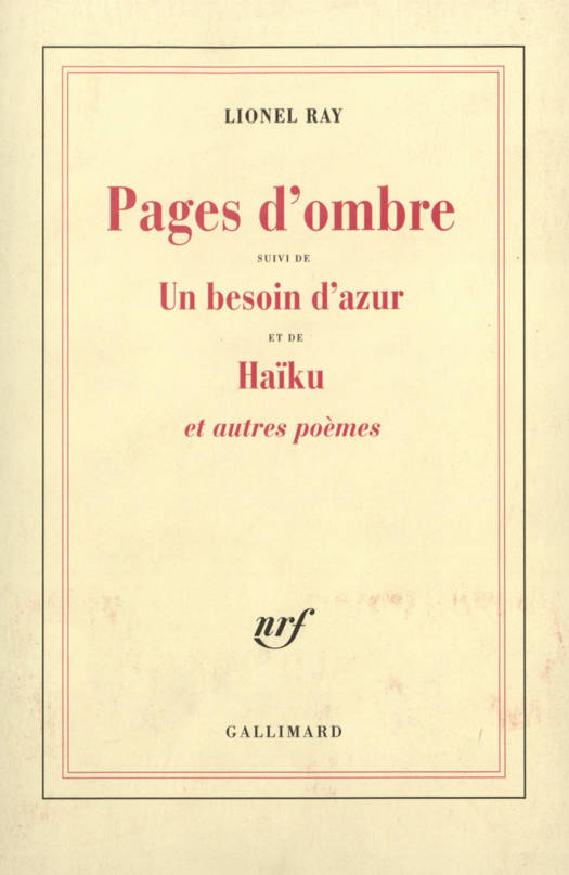 "Depuis longtemps me hantait cette phrase de Rainer Maria Rilke adressée à Jules Supervielle à propos de Gravitations : "C'est comme si c'était fait par personne". Aucun poète n'a jamais reçu plus aimable compliment. Je dois beaucoup à cette phrase. Elle participe du climat mental qui a vu naître mes Pages d'ombre : la recherche d'un art presque invisible, l'aérien souci de l'évidence, un je-ne-sais-quoi de l'ordre et de l'apesanteur. Ce qui n'exclut en rien la gravité ; cette chose de caractère intime que je dis à chaque poème, les deuils, l'irrémédiable séparation, le temps qui perd mesure, la beauté des ombres... et peut-être le gain du chant. Quoi qu'il en soit, c'est l'expérience et la difficulté du simple qui prévaut, contre les facilités de l'obscur, "comme si c'était fait par personne"." Lionel Ray.