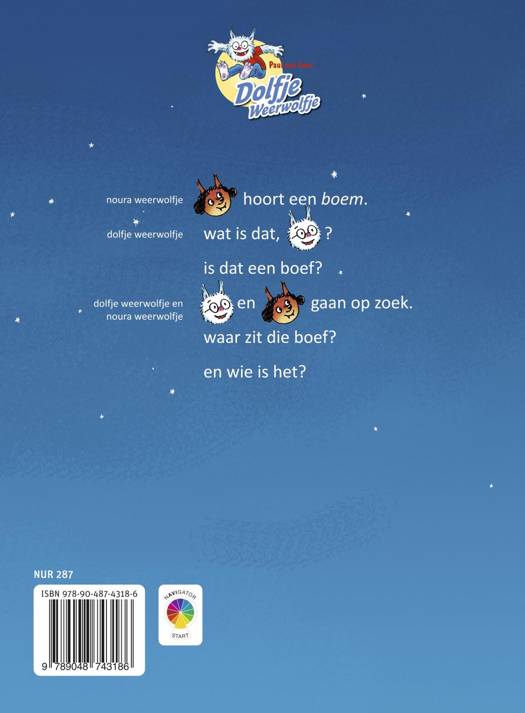 Hoe spannend is het als je ’s nachts in een weerwolf verandert? Dolfje, Noura en neef Leo gebeurt het iedere keer als het volle maan is. In dit spannende boek horen Dolfje en Noura steeds ‘boem!’ Ze gaan op onderzoek uit, maar wat er dan gebeurt … Avontuurlijk verhaal speciaal geschreven voor beginnende lezers in groep 3, met picto’s in plaats van woorden die nog te moeilijk zijn.
