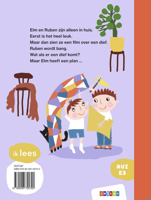 Elm en Ruben mogen van mam even alleen thuis blijven. De broers vinden het geweldig, want dan kunnen ze van alles doen wat ze normaal niet mogen! Ze kijken samen naar een spannende film. Het alleen-zijn wordt een stuk minder leuk … Ze zijn bang! Dan horen ze iemand binnenkomen! Is het een dief? Als dat maar goedkomt …