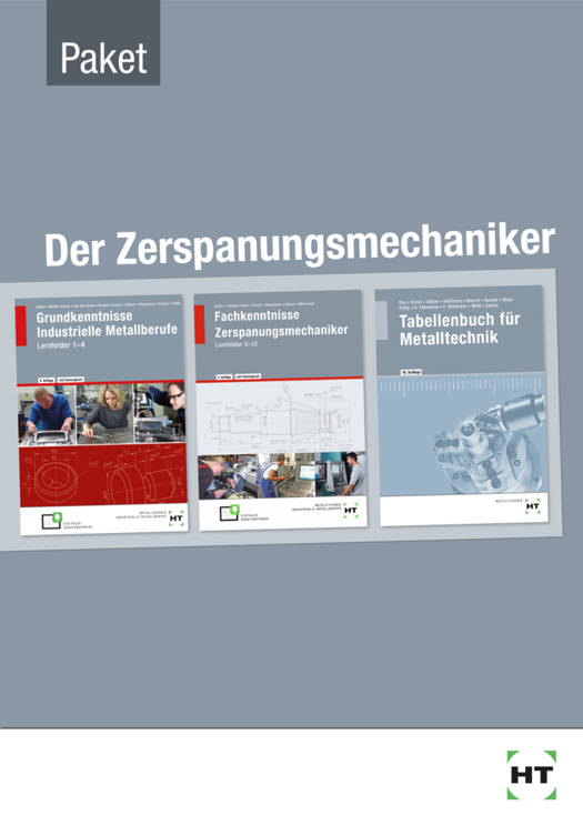 Das Paket "Der Zerspanungsmechaniker" enthält die Titel:- "Grundkenntnisse Industrielle Metallberufe Lernfelder 1-4" ,- "Fachkenntnisse Zerspanungsmechaniker Lernfelder 5-13" und- "Tabellenbuch für Metalltechnik"