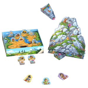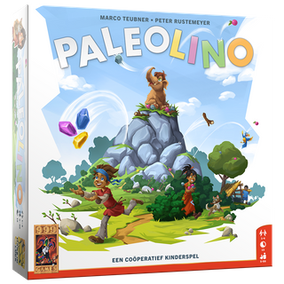 Hoe speel je Paleolino? Pak 2 fiches en rol ze van de berg af! Ja, echt waar: er zit een heuse berg in dit spel waar de fiches vanaf stuiteren. Komen ze bij de bergvoet aan, dan verdwijnen ze in 1 van de grotten. Heb jij onthouden wat waar is geland? Open snel een grot en neem de fiches die je daar vindt. Gebruik deze nu om uitvindingen te bouwen en jullie dorp uit te breiden! Lukt het jullie om 10 uitvindingen te bouwen voordat Lino moe is van al het spelen?