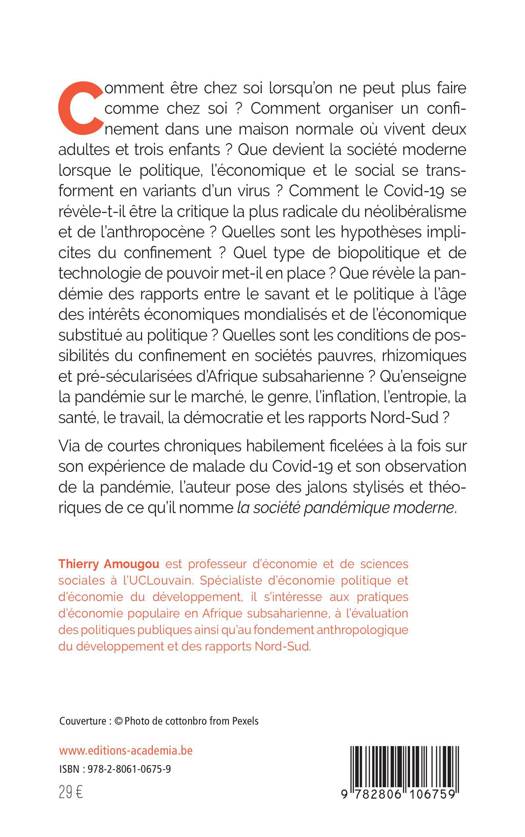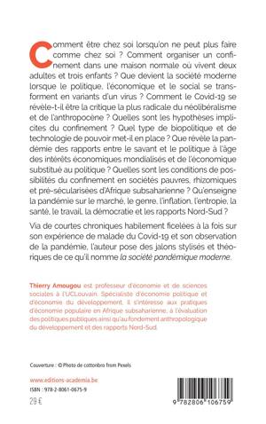 La société pandémique moderne est une crise multiforme de la rationalité au fondement de la modernité. Le pandémisme rehausse la visibilité du superflu, des injustices sociales et des égarements de la société capitaliste moderne. Via de courtes chroniques habilement ficelées à la fois sur son expérience de malade du Covid-19 et son observation de la pandémie, l'auteur pose des jalons stylisés et théoriques de ce qu'il nomme la société pandémique moderne.