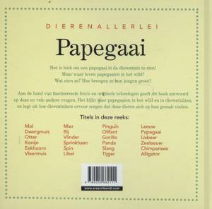 Het is leuk om een papegaai in de dierentuin te zien! Maar waar leven papegaaien in het wild? Wat eten ze? Hoe brengen ze hun jongen groot? Aan de hand van fascinerende foto’s en originele tekeningen geeft dit boek antwoord op deze en vele andere vragen. Het kijkt naar papegaaien in het wild en in dierentuinen, en legt uit hoe dierentuinen ervoor zorgen dat deze dieren zich op hun gemak voelen.