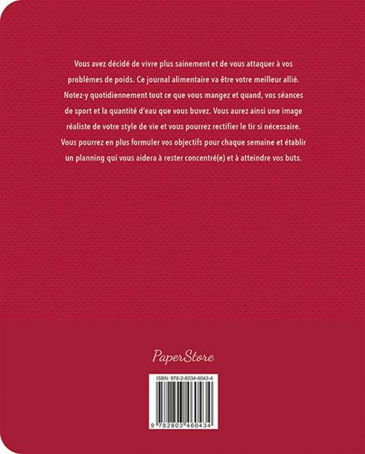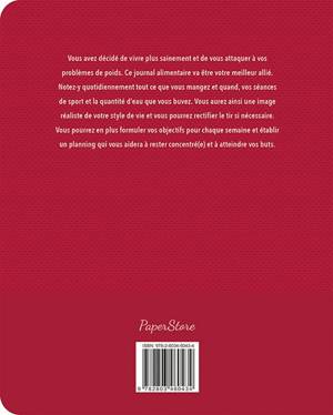 Vous avez décidé de vivre plus sainement et de vous attaquer à vos problèmes de poids. Ce journal alimentaire va être votre meilleur allié. Notez-y quotidiennement tout ce que vous mangez et quand, vos séances de sport et la quantité d'eau que vous buvez. Vous aurez ainsi une image réaliste de votre style de vie et vous pourrez rectifier le tir si nécessaire. Vous pourrez en plus formuler vos objectifs pour chaque semaine et établir un planning qui vous aidera à rester concentré(e) et à atteindre vos buts.