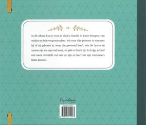 In dit prachtige album kun je voor je kind je familie in kaart brengen, van ouders tot betovergrootouders. Vul voor elke persoon in wanneer hij of zij geboren is, waar die gewoond heeft, wie de broers en zussen zijn en nog veel meer, en plak er foto's bij. Zo krijgt je kind een mooi overzicht van zijn familie en leert het zijn voorouders beter kennen. Gebonden uitvoering met elastiek.