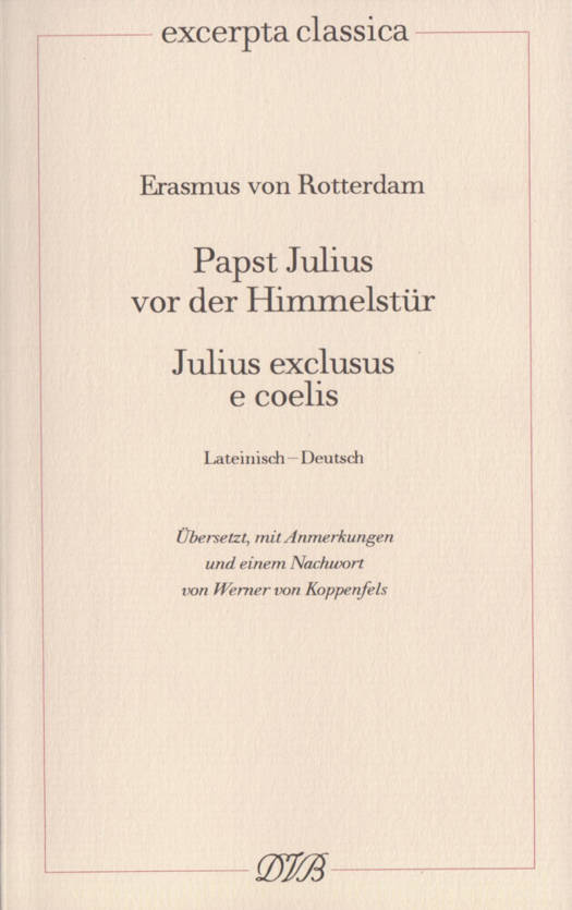"Der Papst der römischen Kirche ist der Nachfolger des Petrus, dem Christus die Schlüsselgewalt am Tor zum Himmel übertragen hat. Das ist, in einem Satz, die spirituelle Grundlage der Macht des mittelalterlichen Papsttums. (...) An dieses Fundament rührt ein beispiellos kühner Dialog, der seit jeher dem Humanisten Erasmus von Rotterdam zugeschrieben wird. Ein soeben verstorbener Papst, der gewaltsame und weltliche Julius II., den wir vor allem als Auftraggeber Raffaels und Michelangelos im Gedächtnis haben, gelangt an die Himmelspforte und wird von Petrus nicht eingelassen.Wer sich mit der aufgewühlten geistigen Lage vor dem Sturmlauf der Reformation bekannt machen will, sollte dieses brillante Stück lateinischer Prosa lesen, das Werner von Koppenfels jetzt zweisprachig mit deutscher Übersetzung herausgegeben hat. Schon Dante hatte einzelne Päpste in die Hölle geschickt; doch so schneidend, so witzig und zugleich so grundsätzlich umfassend war die Institution des Papsttums vorher noch nie angegriffen worden."Gustav Seibt, Süddeutsche Zeitung