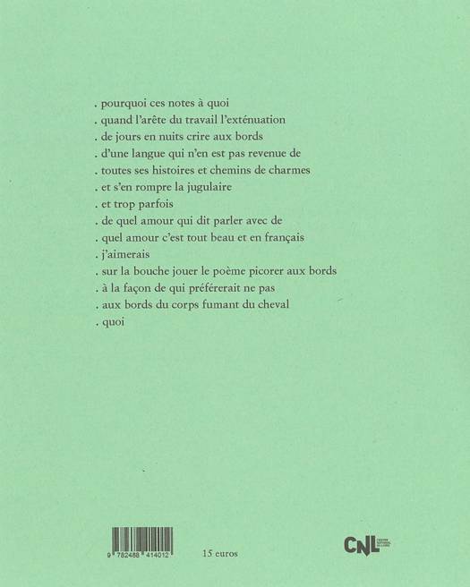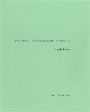 Avec ces notes d'écriture, de lectures, dans cette réflexion sur l'acte d'écrire, sur le lien entre le travail du poète et les emprunts de lectrice, "Par curieuse expérience des questions" interroge les enjeux de la langue et leurs points de jonction, de friction, avec le corps, la vie. Claude Favre écrit avec précision ce que les mots peuvent faire au monde et dans le monde. Comment témoigner de ce dehors dans l'intimité du langage. Mêlé de sa langue et de celle des autres, le texte avance par ajouts, note après note, s'interrogeant sur son propre devenir, sur son pouvoir de réalisation et ses limites.