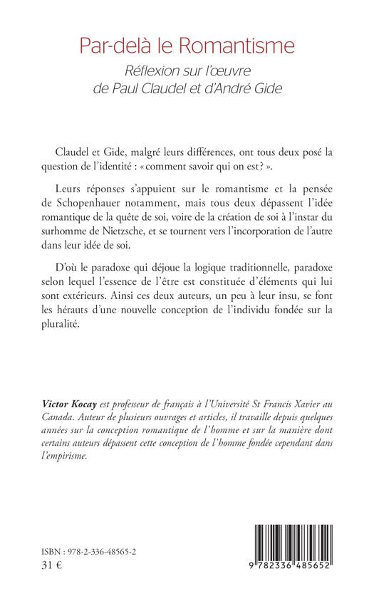 Claudel et Gide, malgré leurs différences, ont tous deux posé la question de l'identité comment savoir qui on est ? . Leurs réponses s'appuient sur le romantisme et la pensée de Schopenhauer notamment, mais tous deux dépassent l'idée romantique de la quête de soi, voire de la création de soi à l'instar du surhomme de Nietzsche, et se tournent vers l'incorporation de l'autre dans leur idée de soi. D'où le paradoxe qui déjoue la logique traditionnelle, paradoxe selon lequel l'essence de l'être est constituée d'éléments qui lui sont extérieurs. Ainsi ces deux auteurs, un peu à leur insu, se font les hérauts d'une nouvelle conception de l'individu fondée sur la pluralité.