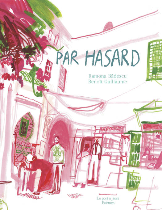 Ce recueil de poèmes est le fruit d’une résidence artistique à Dar Ben Jelloun dans la vieille ville de Tétouan, dans le cadre d’un partenariat entre Le port a jauni et l’Institut français de Tétouan. Ramona Badescu et Benoît Guillaume sont partis en résidence ensemble durant trois semaines au mois de mai 2018, l’une pour écrire, l’autre pour dessiner. Jour après jour, ils se sont installés au même endroit, l’un dessinait, l’autre écrivait. Jour après jour, au gré du hasard, ils ont relaté le monde qui les entourait, chacun de leur point de vue, les mêmes lieux, les mêmes gens, les mêmes scènes : un concert de musique, la terrasse d’un café, l’orage menace, un cortège funéraire passe, un chat dort, près du four à pain… Les poèmes répondent aux dessins qui parlent aux poèmes, par hasard.
