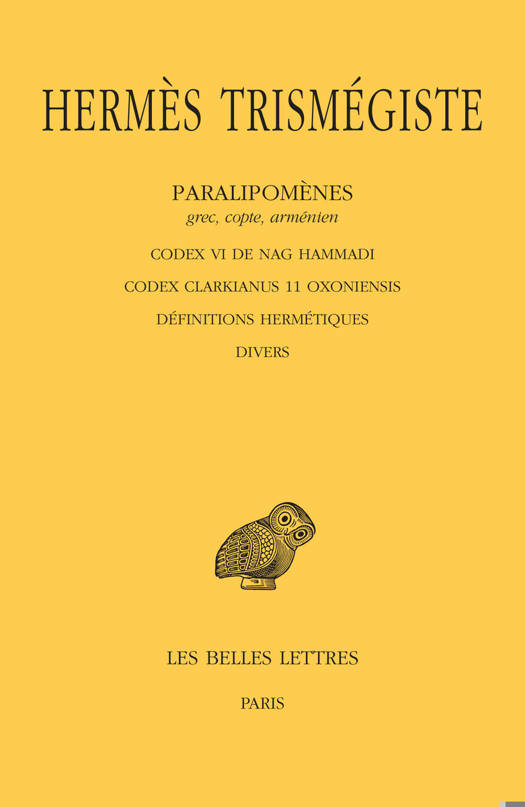 Les textes grecs et latins ont été publiés dans la CUF en 4 volumes, de 1941 à 1954, par A. D. Nock et A.-J. Festugière. Depuis, d’autres témoins ont été découverts, en grec, en copte, en arménien, en syriaque et en arabe. Parmi ces Paralipomènes, se révèlent quelques pierres angulaires de l’édifice hermétique.
