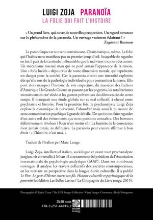 Le paranoïaque est souvent convaincant. Charismatique, même. La folie qui l’habite ne se manifeste pas au premier coup d’œil. Incapable de regarder en lui, il part de la certitude inébranlable que le mal vient toujours des autres. Un mécanisme insensé mais qui ne perd jamais l’apparence de la raison. Une « folie lucide » dépourvue de toute dimension morale, qui représente un danger pour la société. Car la paranoïa atteint une intensité explosive dès qu’elle sort de la pathologie individuelle pour contaminer la masse. Elle peut alors marquer l’histoire de son empreinte, du massacre des Indiens d’Amérique à la Grande Guerre en passant par les pogroms, les totalitarismes monstrueux du XXe siècle et les guerres préventives des démocraties de notre temps. Il manquait une étude globale sur ce mal collectif, à cheval entre psychiatrie et histoire. Pour la première fois, le psychanalyste Luigi Zoja explore la dynamique, la perversité, l’absurdité mais aussi la puissance de cette contamination psychique à grande échelle. De quoi nous faire regarder d’un autre œil des événements que nous pensions connaître. Des horreurs définitivement révolues ? Rien n’est moins sûr. La lumière de la conscience n’est jamais totale, ni définitive. La paranoïa peut encore affirmer à bon droit : « L’histoire, c’est moi. »