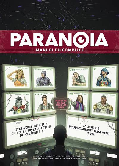 Bien entendu, le Livre de Base est parfait. Sans doute même plus que parfait. Mais savez-vous ce qui est plus que parfait au carré ? Un guide du joueur ! Sauf qu'ici, c'est PARANOIA, il n'y a pas de guide. Ceci est le Manuel du Complice. Vous y trouverez un paquet de nouvelles règles et contenus pour rendre vos joueurs intrigués mais un poil inquiets quand même, et surtout pour qu'ils explosent (de joie) ! Vous faites erreur. Personne n'est en train de hurler. Le Manuel du Complice est là pour vous aider à créer de meilleures missions à la minute où vous l'achèterez - mais bon vous l'avez déjà acheté, n'est-ce pas ?