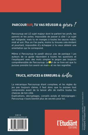 Même si Parcoursup te paraît obscur, pas de panique ! Les auteurs de ce guide répondent à toutes tes questions et t'expliquent avec des mots simples le jargon pas toujours compréhensible de Parcoursup. Le but de ce livre est que tu puisses prendre ton avenir en main et ne rien regretter.