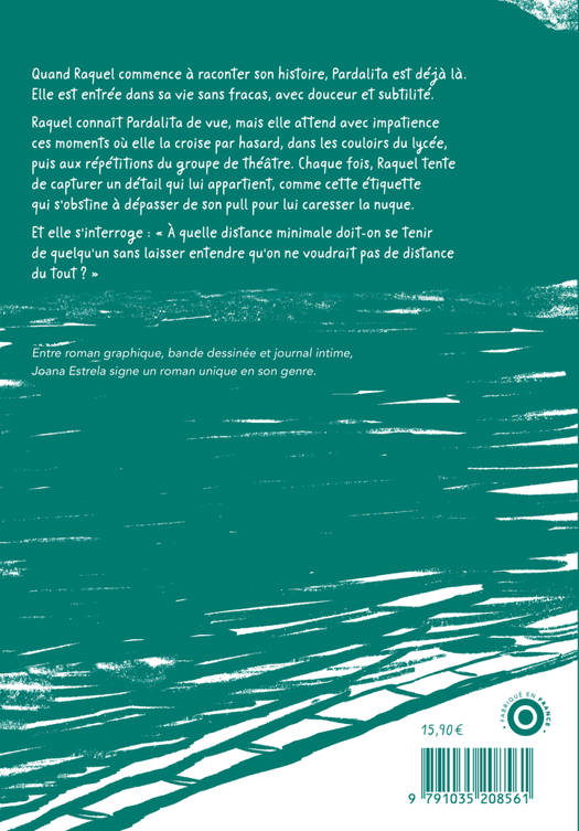 Quand Raquel commence à raconter son histoire, Pardalita est déjà là. Elle est entrée dans sa vie sans fracas, avec douceur et subtilité. Raquel connaît Pardalita de vue, mais elle attend avec impatience ces moments où elle la croise par hasard, dans les couloirs du lycée, puis aux répétitions du groupe de théâtre. Chaque fois, Raquel tente de capturer un détail qui lui appartient, comme cette étiquette qui s'obstine à dépasser de son pull pour lui caresser la nuque. Et elle s'interroge : « À quelle distance minimale doit-on se tenir de quelqu'un sans laisser entendre qu'on ne voudrait pas de distance du tout ? »