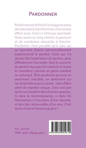 Pardonner est le fruit d'un long processus de maturation chez l'homme, d'un certain effort aussi. Celui-ci n'est pas spontané. Nous avons un long chemin à parcourir et de nombreux obstacles à franchir. Pardonner n'est possible qu'à celui qui se souvient d'avoir personnellement expérimenté le pardon. Celui qui n'a jamais fait l'expérience du pardon, peut difficilement l'accorder. Seul le souvenir du pardon reçu peut le conduire à ne pas le considérer comme un geste subtilisé ou extorqué. Être pardonné procure un sentiment indicible, un sentiment qui ne ressemble à aucun autre, celui d'être aimé de manière unique. C'est une joie qu'on ne connaît ni dans l'amour-passion, ni dans la reconnaissance, ni dans les félicitations à l'occasion d'une réussite, ni lors des retrouvailles d'un ami. C'est autre chose et beaucoup plus !