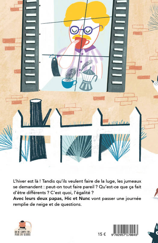 L'hiver est là ! Tandis qu'ils veulent faire de la luge, les jumeaux se demandent : peut-on tout faire pareil ? Qu'est-ce que ça fait d'être différents ? C'est quoi, l'égalité ? Avec leurs deux papas, Hic et Nunc vont passer une journée remplie de neige et de questions.