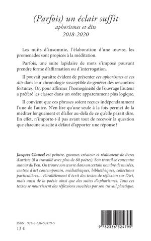 Les nuits d'insomnie, l'élaboration d'une oeuvre, les promenades sont propices à la méditation. Parfois, une suite lapidaire de mots s'impose pouvant prendre forme d'affirmation ou d'interrogation. Il pouvait paraître évident de présenter ces aphorismes et ces dits dans leur chronologie susceptible de générer des rencontres fortuites. Or, pour affirmer l'homogénéité de l'ouvrage l'auteur a préféré les classer dans un ordre apparemment plus logique. Il convient que ces phrases soient reçues indépendamment l'une de l'autre. N'en lire qu'une seule à la fois permet de la méditer longuement et d'aller au-delà de ce qu'elle paraît dire. En effet, n'importe-t-il pas avant tout de recevoir la question que chacune suscite à défaut d'apporter une réponse ?