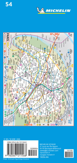 Un plan au 1:20.000 qui indique les sens uniques, les stations Vélib', les parkings et comporte un plan de métro, etc.