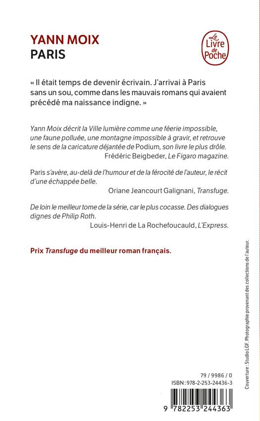 Yann Moix décrit la Ville lumière comme une féerie impossible, une faune polluée, une montagne impossible à gravir, et retrouve le sens de la caricature déjantée de Podium, son livre le plus drôle. Frédéric Beigbeder, Le Figaro magazine.