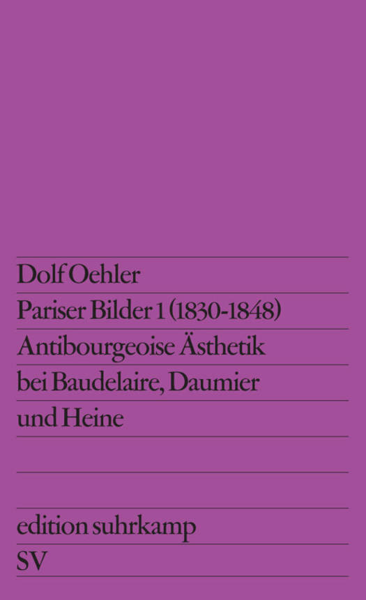 Die moderne Poesie, als deren Begründer Baudelaire gilt, enthält eine geschichtliche Substanz, von der man bis zu Walter Benjamin kaum etwas ahnte. An ihrem Anfang steht die nicht mehr bloß ästhetische Auseinandersetzung mit der Prosa der Bourgeoiswelt. Die zu Beginn der Julimonarchie von Heine, Daumier u. a. begründete, von Baudelaire 1846 dann programmatisch formulierte postromantische Ästhetik nimmt jene Prosa in ihrer widersprüchlichen Bewegung in sich auf, um sie in revolutionärem Sinne zu transformieren. Die Verfahrensweisen dieser antibourgeoisen Ästhetik, ihre historischen und ästhetischen Voraussetzungen, ihre Strategien und Aporien werden deutlich nur in der konkreten Konfrontation der Werke mit dem historisch-ideologischen »Text«, auf den sie sich beziehen. Oehlers Buch will den Blick öffnen für den Traditionszusammenhang von »realistischer« und »esoterischer« Avantgarde.