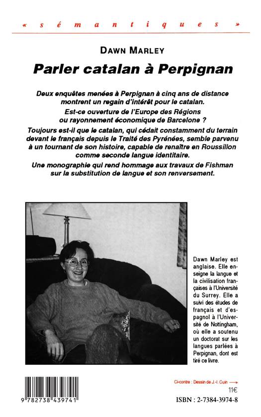 Deux enquêtes menées à Perpignan à cinq ans de distance montrent un regain d'intérêt pour le catalan. Est-ce ouverture de l'Europe des Régions ou rayonnement économique de Barcelone ? Toujours est-il que le catalan, qui cédait constamment du terrain devant le français depuis le Traité des Pyrénées, semble parvenu à un tournant de son histoire, capable de renaître en Roussillon comme seconde langue identitaire. Une monographie qui rend hommage aux travaux de Fishman sur la substitution de langue et son renversement.