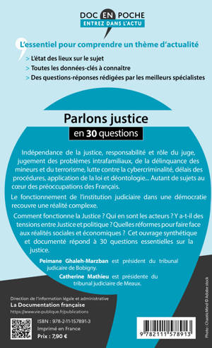 La justice est au cœur de l’actualité quotidienne. Elle demeure toutefois mal connue du grand public et souvent critiquée, notamment pour sa complexité. Qu’est-ce que la justice ? Quelle est son organisation ? Quel est son fonctionnement ? Souvent perçu comme un labyrinthe, le monde de la justice s’ouvre à nous à travers ce nouveau « Entrez dans l’actu » en 30 questions. Les auteurs, apportent des informations objectives et factuelles sur la justice et son fonctionnement. Ils abordent des sujets comme la spécialisation de la justice, la féminisation de la magistrature, les violences intrafamiliales, la lutte contre la cybercriminalité ou le jugement des terroristes.