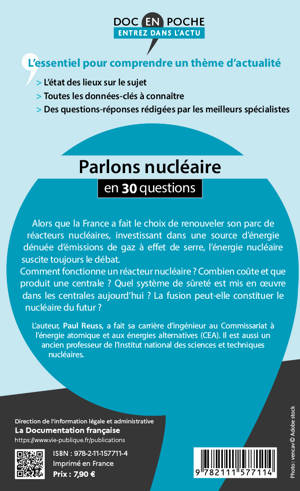 Cette nouvelle édition actualise les données chiffrées et apporte des précisions sur les grands débats autour du nucléaire. Combien coûte et que produit une centrale ? Sortir du nucléaire, quelles conséquences ? Plus de dix ans après l'accident de Fukushima, l'énergie nucléaire suscite toujours autant de réticences et de débats. Tandis que le Japon après quelques années passées sans cette énergie relance doucement sa production, plusieurs pays comme l'Allemagne ont décidé de "sortir du nucléaire". Dans ce contexte, pourquoi la France est-elle le pays le plus nucléarisé du monde ? Quelles sont les perspectives d'évolution ?