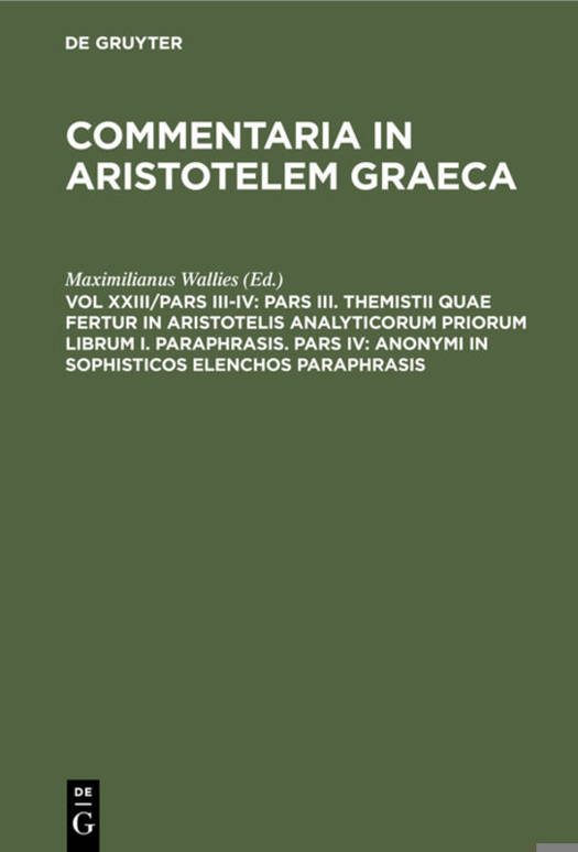 No detailed description available for "Pars III. Themistii quae fertur in Aristotelis analyticorum priorum librum I. Paraphrasis. Pars IV: Anonymi in Sophisticos elenchos Paraphrasis".