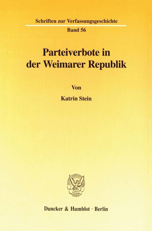 Im Anschluß an die Skizzierung der verfassungsrechtlichen Ausgangslage werden als Schwerpunkt der Untersuchung die geschichtlichen Ursachen für die Schaffung von »Parteiverbotsnormen«, die rechtlichen Voraussetzungen und Folgen eines Verbots sowie die Rechtsschutzmöglichkeiten erörtert. Für die Darstellung der Anwendung der Normen durch die Verbotsbehörden und die Rechtsprechung wurde auf bislang größtenteils unveröffentlichtes Archivmaterial zurückgegriffen