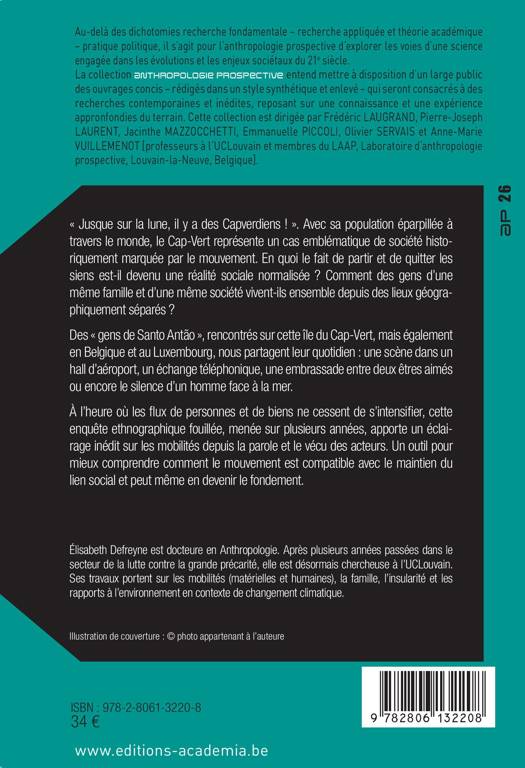 Partir, revenir et faire circuler: telle est la vie en mouvement permanent des gens de Santo Antão, cette île au nord de l'archipel du Cap-Vert. Au fil d'une expérience ethnographique menée sur plusieurs années et dans plusieurs lieux (Cap-Vert, Luxembourg, Belgique), l'auteure invite à basculer dans un monde où le départ en migration est transmis en héritage. Et où circuler devient alors la condition pour perpétuer le lien entre les individus, que ce soit à l'échelle de la famille ou de toute la société.