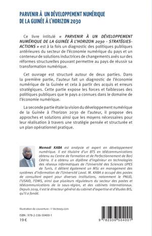 Ce livre est à la fois un diagnostic des politiques publiques antérieures du secteur de l'économie numérique du pays et un conteneur de solutions inductrices de changements axés sur des réformes structurelles pouvant permettre au pays de réussir sa transformation numérique. Cet ouvrage est structuré autour de deux parties. Dans la première partie, l'auteur fait un diagnostic de l'économie numérique de la Guinée et cela à partir des acquis et erreurs stratégiques. Cette partie expose les forces et faiblesses des politiques publiques que le pays a connues dans le domaine de l'économie numérique. La seconde partie étale la vision du développement numérique de la Guinée à l'horizon 2030 de l'auteur, il propose des approches et solutions ainsi que les moyens nécessaires pour leur réalisation à travers une stratégie pensée et structurée et un plan opérationnel pratique.
