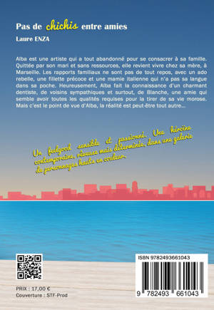 Alba est une artiste qui a tout abandonné pour se consacrer à sa famille. Quittée par son mari et sans ressources, elle revient vivre chez sa mère, à Marseille. Les rapports familiaux ne sont pas de tout repos avec un ado rebelle, une fillette précoce et une mamie italienne qui n’a pas sa langue dans sa poche. Heureusement, Alba fait la connaissance d’un charmant dentiste, de voisins sympathiques et surtout, de Blanche, une amie qui semble avoir toutes les qualités requises pour la tirer de sa vie morose. Mais c’est le point de vue d’Alba, la réalité est peut-être tout autre…