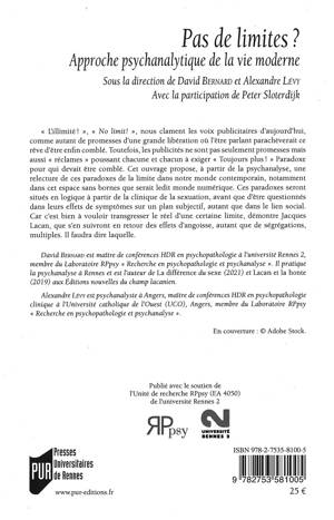 Cet ouvrage propose une relecture des paradoxes de la limite dans notre monde contemporain, notamment dans cet espace sans bornes que serait ledit monde numérique. Ces paradoxes seront situés en logique à partir de la clinique de la sexuation, avant que d'être questionnés dans leurs effets de symptômes sur un plan subjectif, autant que dans le lien social. Car c'est bien à vouloir transgresser le réel d'une certaine limite, démontre Jacques Lacan, que s'en suivront en retour des effets d'angoisse, autant que de ségrégations, multiples. Il faudra dire laquelle.
