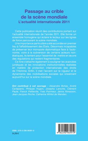 Cette publication porte sur l'actualité mondiale de l'année 2011 : une importance particulière a été accordée à l'affaiblissement des Etats. Ce livre souligne également les avancées juridiques et les innovations institutionnelles réalisées en matière de protection internationale des droits de l'Homme, il met en avant la vigueur et le dynamisme des mobilisations sociales s'exerçant aujourd'hui sur la scène mondiale.