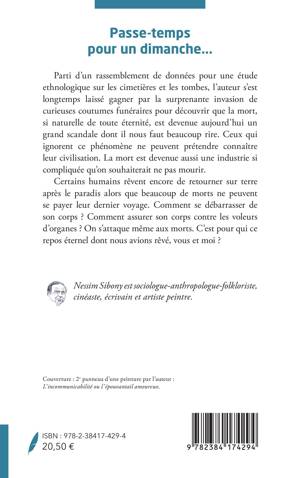 Parti d'un rassemblement de données pour une étude ethnologique sur les cimetières et les tombes, l'auteur s'est longtemps laissé gagner par la surprenante invasion de curieuses coutumes funéraires pour découvrir que la mort, si naturelle de toute éternité, est devenue aujourd'hui un grand scandale dont il nous faut beaucoup rire. Ceux qui ignorent ce phénomène ne peuvent prétendre connaître leur civilisation. La mort est devenue aussi une industrie si compliquée qu'on souhaiterait ne pas mourir. Certains humains rêvent encore de retourner sur terre après le paradis alors que beaucoup de morts ne peuvent se payer leur dernier voyage. Comment se débarrasser de son corps ? Comment assurer son corps contre les voleurs d'organes ? On s'attaque même aux morts. C'est pour qui ce repos éternel dont nous avions rêvé, vous et moi ?