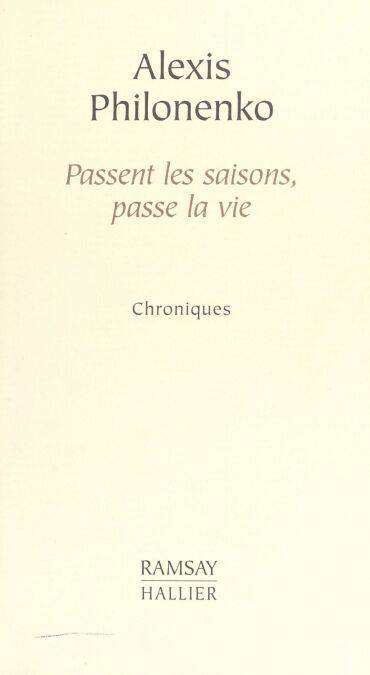 Alexis Philonenko, pendant deux années, chaque mois, s’est laissé aller à observer quelques événements de notre existence, que nous disons banale sans bien y penser. Voici ses chroniques qui furent publiées dans la Revue des Deux Mondes, sous le titre « Perspectives », telles des feuilles cueillies au rythme des saisons. Elles reproduisent l’élan vital, ordinairement bousculé par les quotidiens qui sacrifient aux impératifs de rubriques préfabriquées. Cette logique secrète infuse l’écriture et tantôt la plume se fait alerte, tantôt pesante, sans que cesse de se développer une unité de style. Passent les saisons, passe la vie.